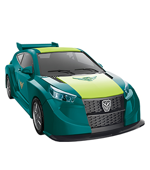 미니 쿠페 스타일의 여성 카봇으로 톡톡 쏘는 말투와 어디로 튈지 모르는 4차원 성격을 갖고 있다.